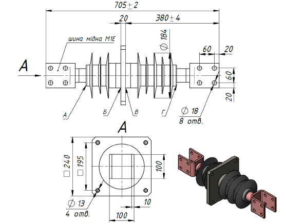 | Материал шин и токопровода | Медь |