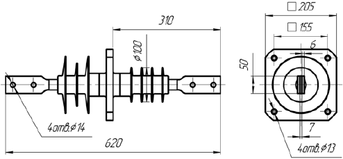 Изолятор проходной полимерный ППЦ-10/1000-12,5 УХЛ1