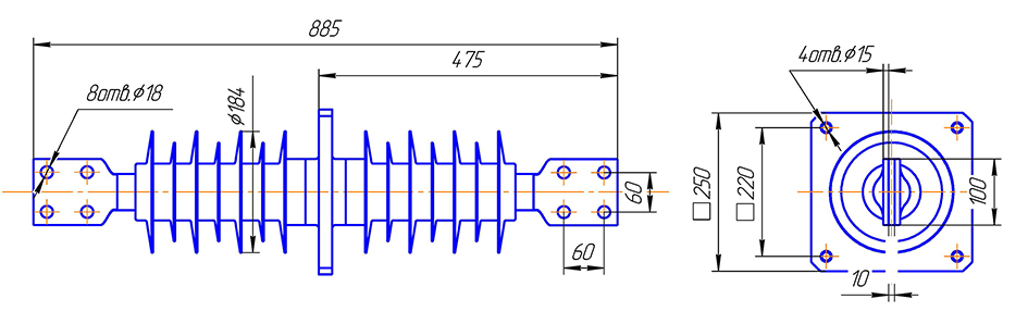 Изолятор проходной полимерный ППЦ-20/2000-12,5 УХЛ1